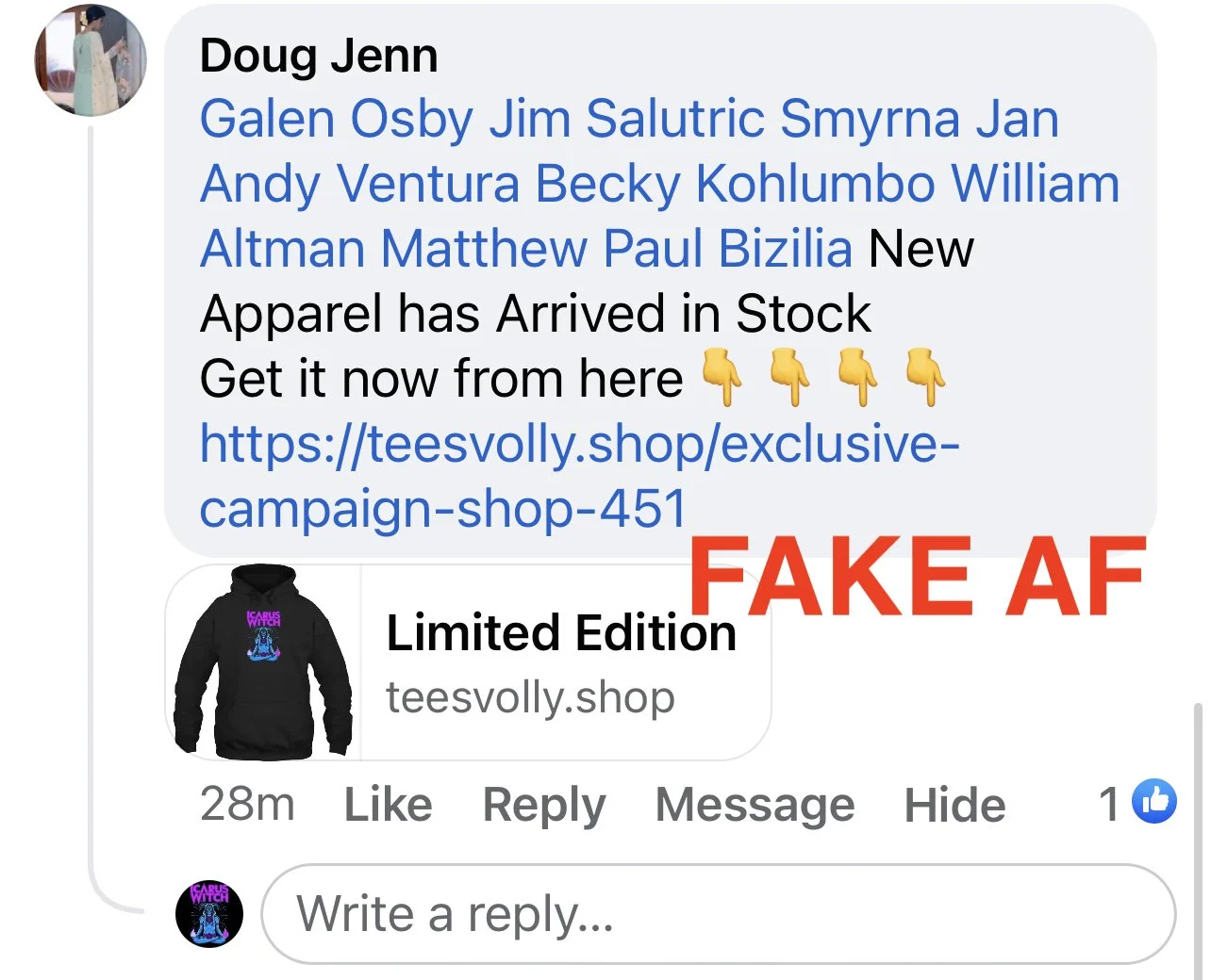 More importantly than the money that bands lose from fraudulent merch sellers, we want to protect YOU from receiving shoddy merch and especially from giving criminals your payment info.
